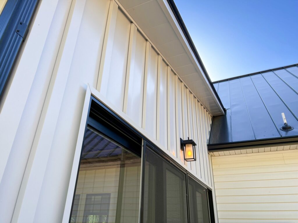- Vertical board-and-batten profile for a bold, modern architectural look