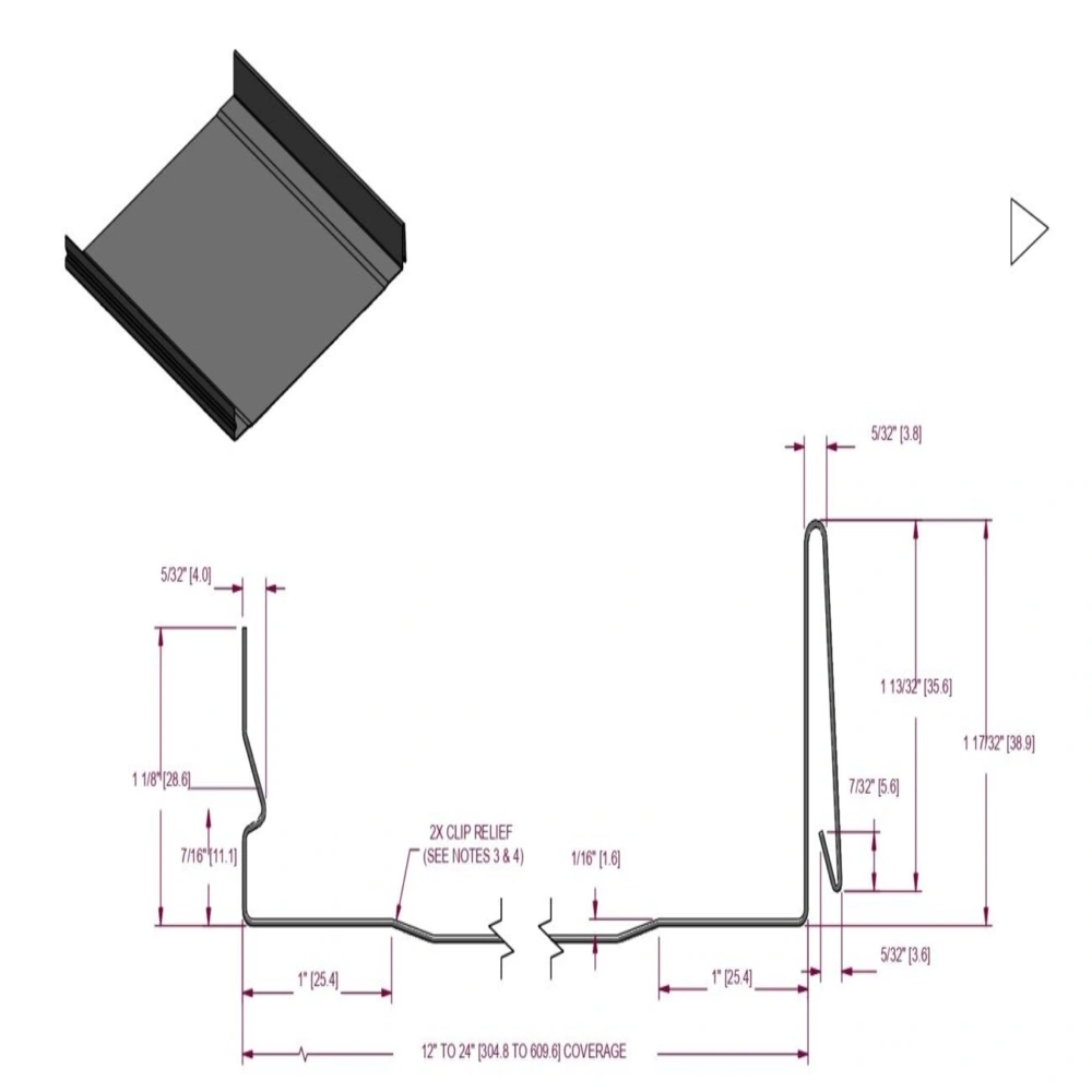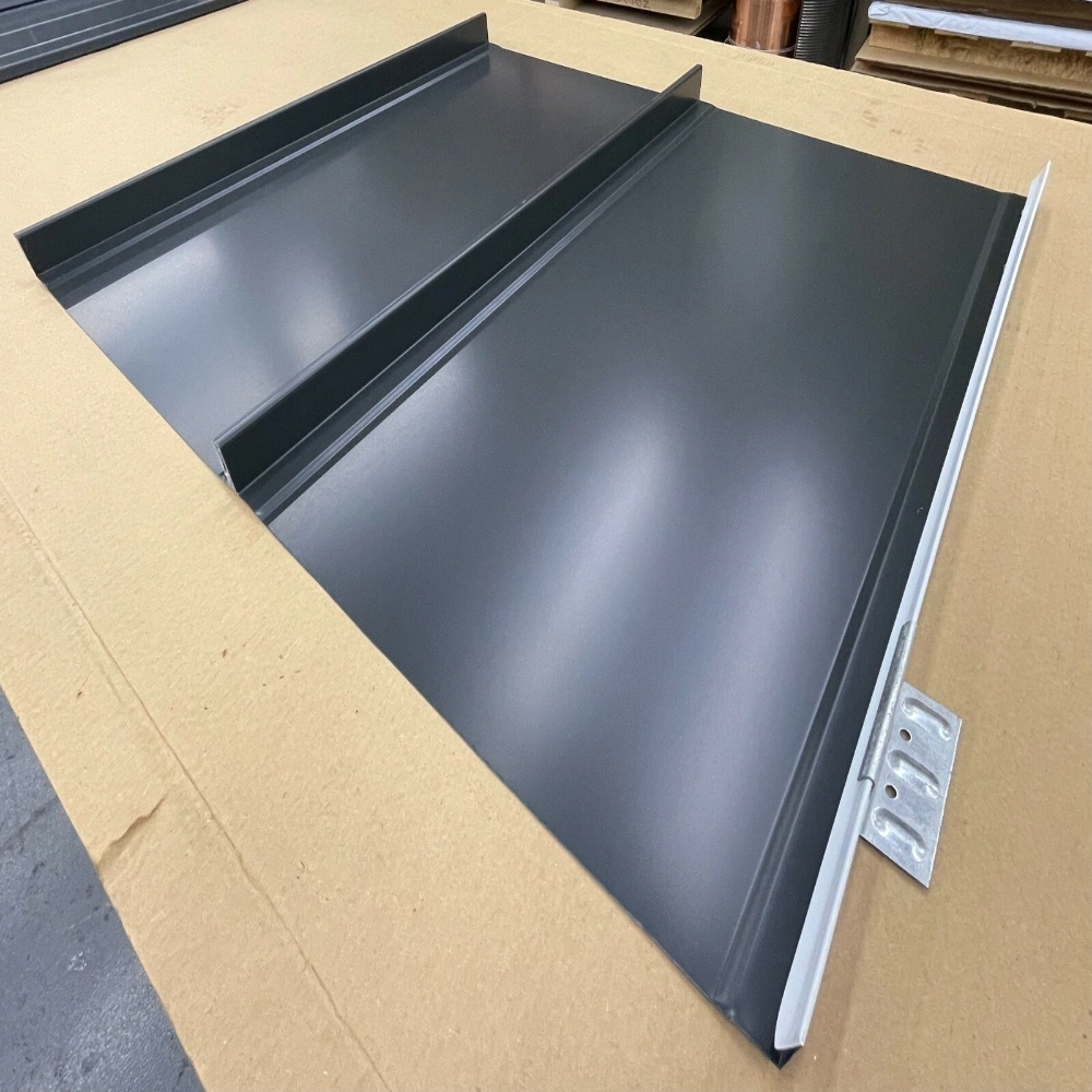 - 1 3/4″ high standing seam profile for enhanced rigidity and architectural definition